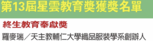 本協會理事羅麥瑞修女榮獲第13屆星雲終生教育奉獻獎 跨宗教典範